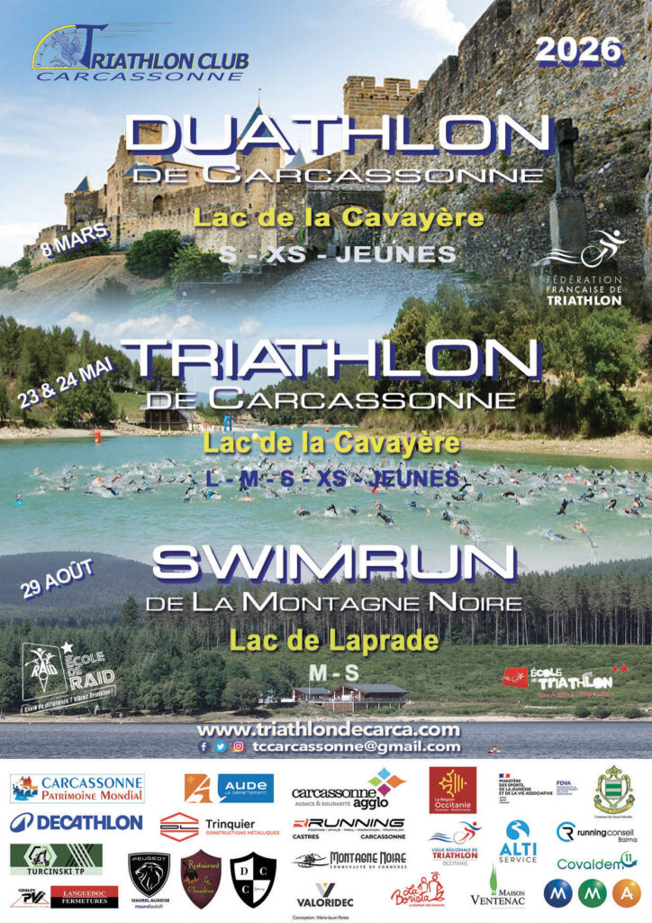 Pour la saison 2026, le Triathlon Club Carcassonne vous accueille dans l’Aude pour courir sur les terres du Pays Cathare. Vous trouverez ici toutes les informations relatives au 37e Triathlon, au Duathlon et au Swimrun de la Montagne Noire, ainsi que la possibilité de vous inscrire en ligne.