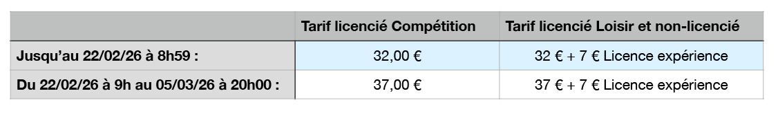 Tarifs Duathlons S